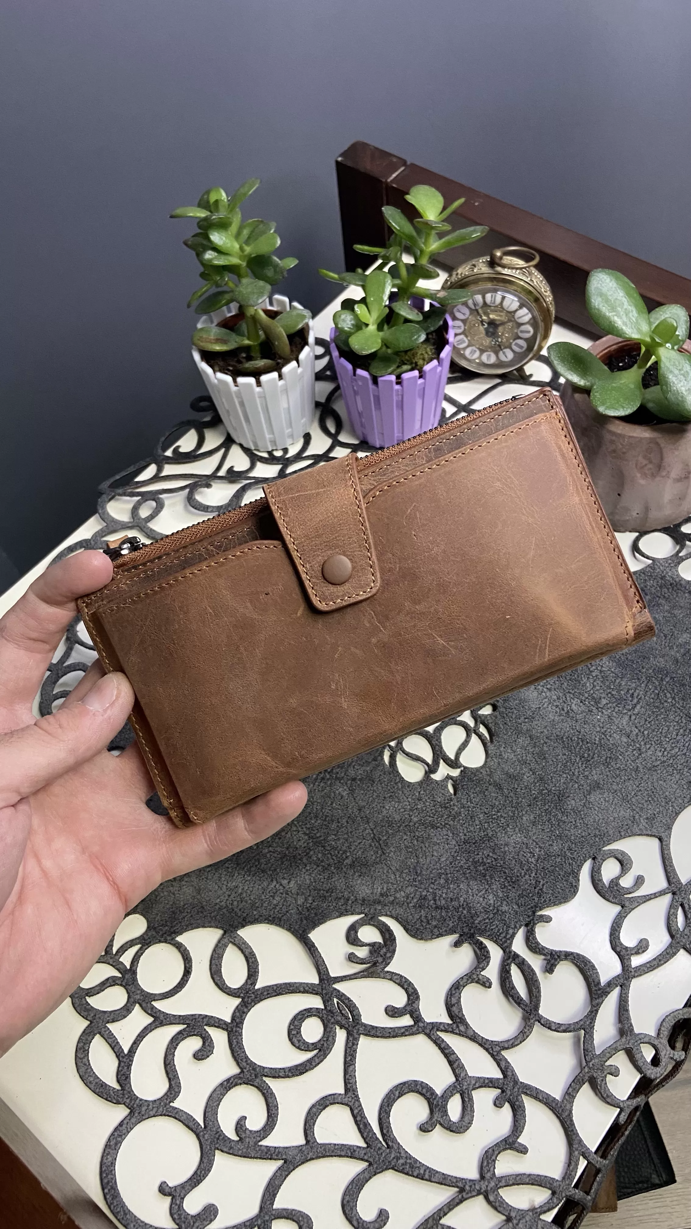 Hakiki Dana Derisinden Üretilmiş Telefon Bölmeli Cüzdan